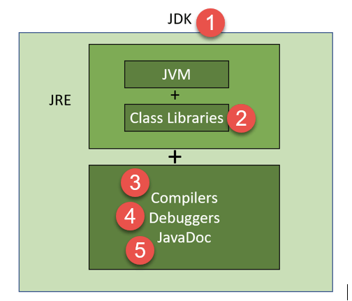 JRE는 자바 어플리케이션을 수행하기 위한 SW(JVM과 Class Libraries등 최소한의 환경)라고 볼 수 있고 JDK는 JRE + 개발에 필요한 SW를 모아 놓은 좀 더 큰 범위의 SW라고 볼 수 있다.