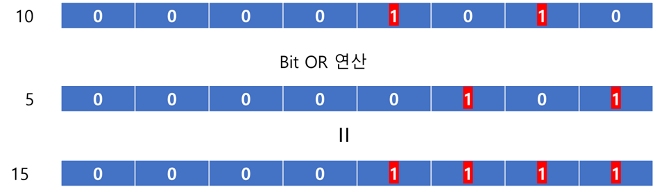 // bit OR 연산은 15 (1010 | 0101로 연산)