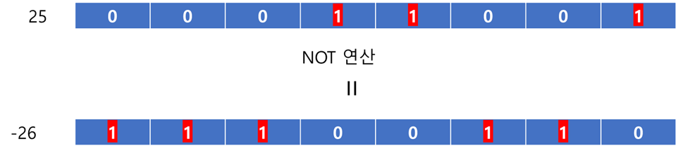 - NOT 연산은 비트의 반전이다. 다만 부호 표기에 유의해서 연산해야하는 부분이 있다.